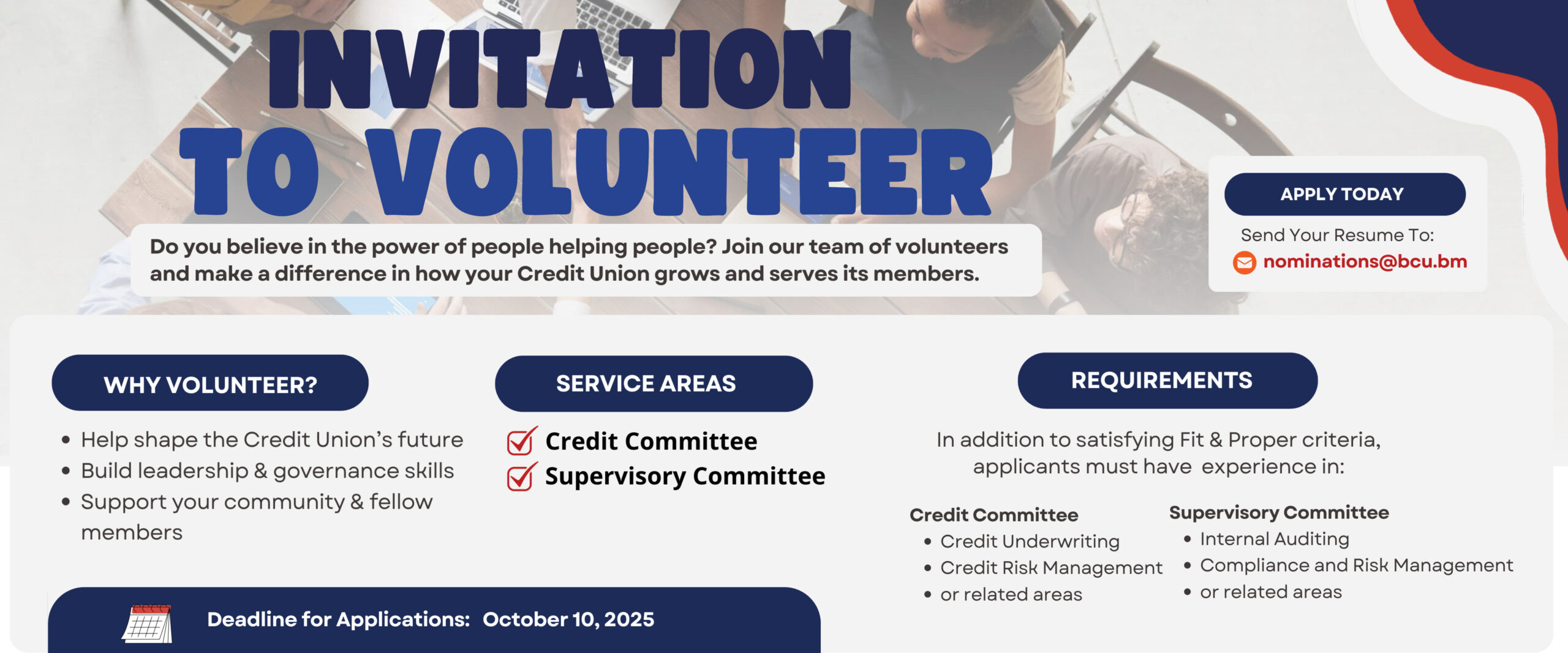 At Bermuda Credit Union, we are always striving to improve the service and support we provide to you, our valued Members.